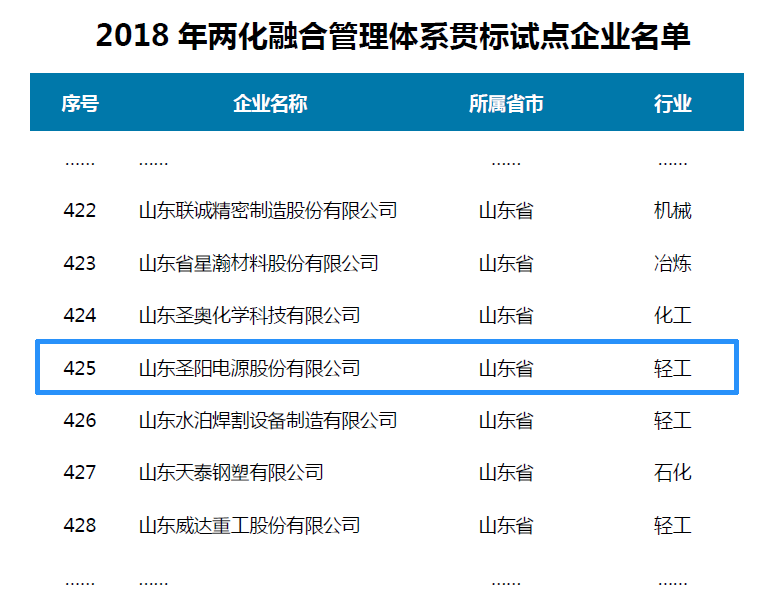 近期,工業(yè)和信息化部公布了2018年國家級兩化融合管理體系貫標(biāo)試點(diǎn)企業(yè)名單,圣陽電源首次參評并成功入圍。